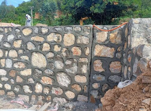 在混凝土初凝后,按设计图纸砌筑毛石,砌筑过程中应注意石块之间的搭接和咬合。