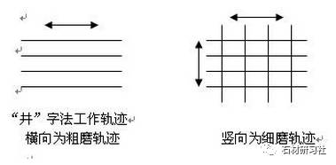 3、细磨精度细磨的目的是去除粗磨的划痕,以及打剪口形成的波浪层,一般采用“井”字法进行石面操作,如下图4: