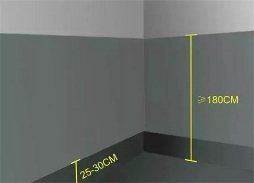 浴缸和淋浴区域是卫生间中最容易积水和湿气集中的地方,因此对于这些区域的防水要求尤为严格。根据规范要求,浴缸和淋浴区域的防水高度应该至少达到1800mm以上。这意味着这些区域的墙面至少应该进行1800mm高度的防水处理,以确保水分和湿气不会渗透到墙壁和地板之间。