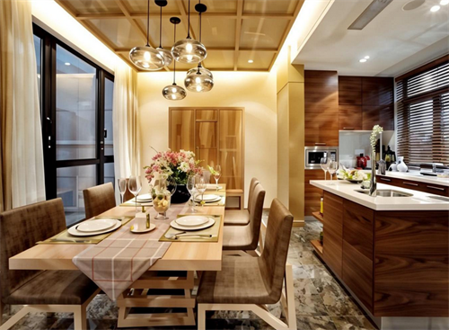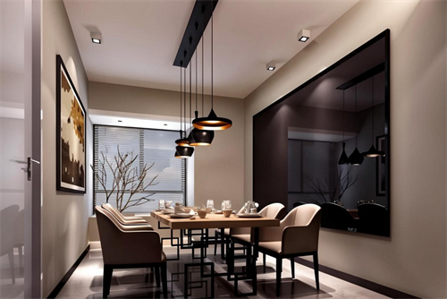 如果餐厅使用频率高、用餐人数多,建议采用多层次的照明设计,吊灯可考虑稍高悬挂,以便能够照亮整个桌面区域。但这也需要保持在75-90厘米的范围内,以保证没有视觉障碍。