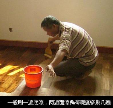 翻新地板时,一般需要刷一遍底漆,两遍面漆。如果打磨后的地板表面还有瑕疵,就要根据情况多刷几遍底漆。
