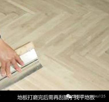 地板打磨完后需再刮腻子找平地板,使用与地板漆配套的专用透明底漆腻子,刮在打磨好的地板上待干。