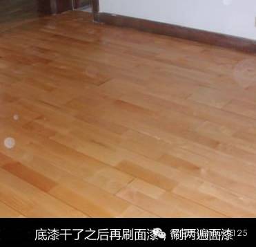 底漆干了之后再刷面漆,再次干燥之后再用水砂纸仔细研磨,将地板面层磨至略感粗糙,除去粉屑,刷第二层面漆。