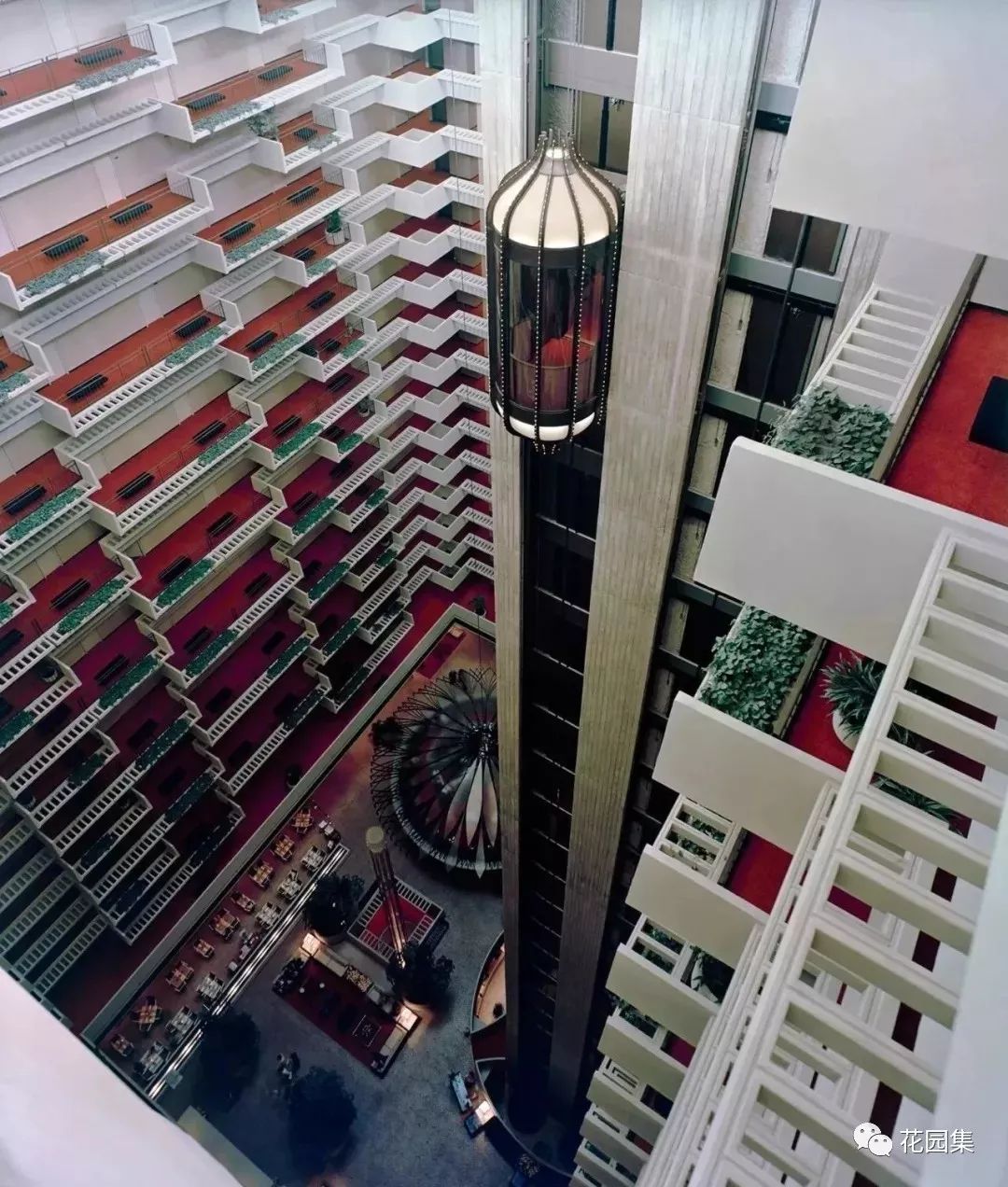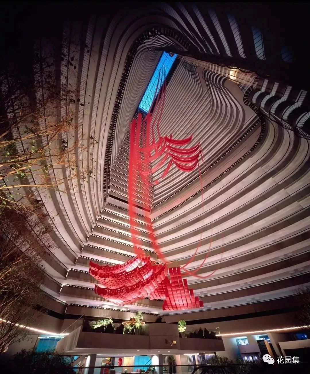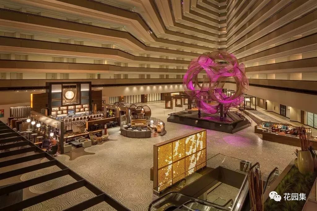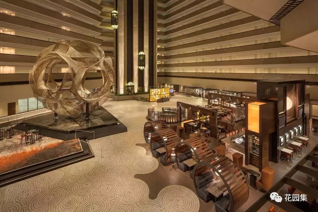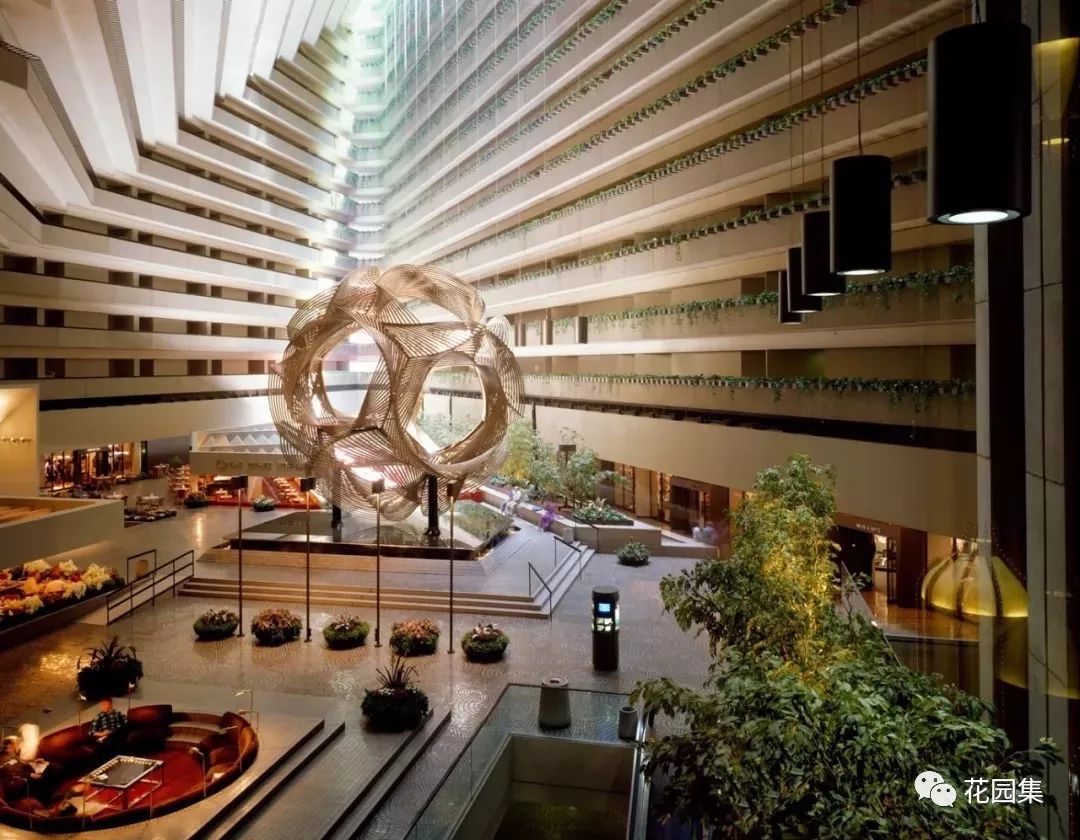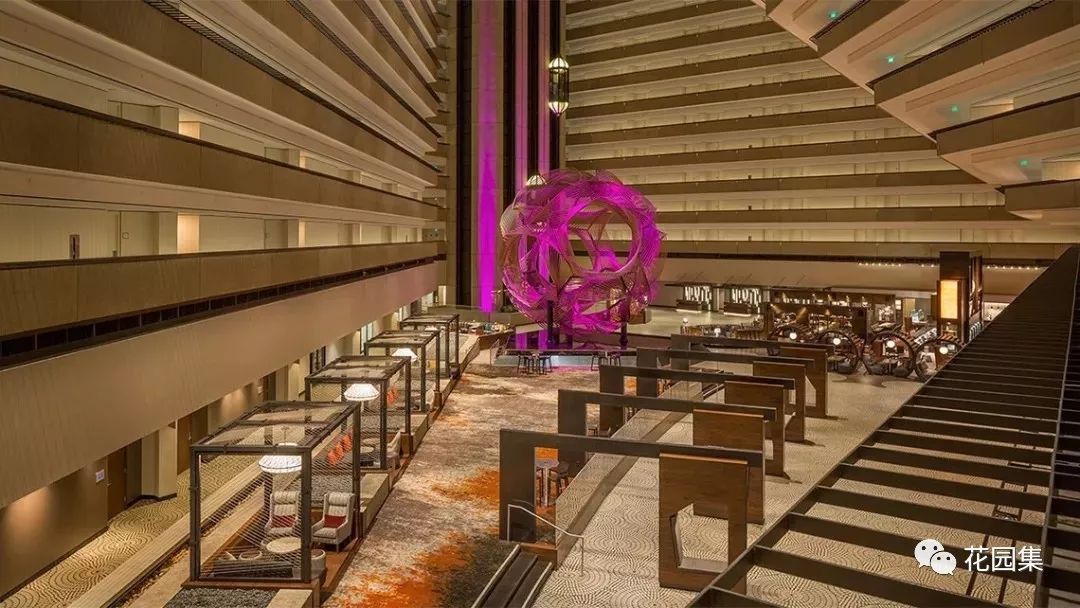 酒店中的中庭设计,让建筑内部的空间得到更多的光线,同时也增添更多特殊的景致。