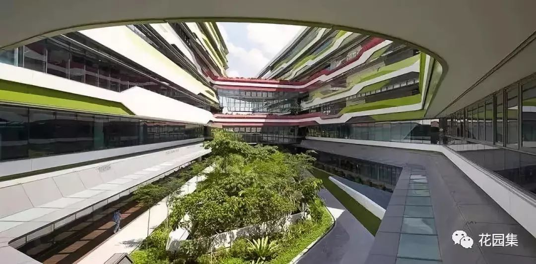 在中庭打造景观是现代建筑通用,通过在中庭打造景观可以更好的彰显绿色生态,大多中庭的环境宜人相对于其他建筑空间打造景观,更具有实用性与延展性。