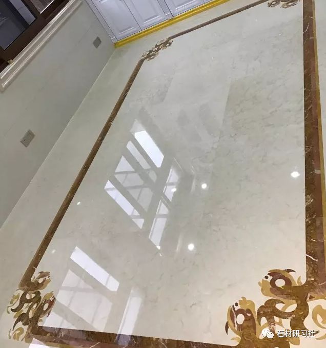 埃及米黄光面大板面呈现米黄底色,分多种花色,有豆腐花,有均匀点状,有带水晶线状。给人以高贵典雅的视觉效果,分布自然流畅,但是材质较为松散,是目前进口米黄大理石中价格最为实惠的品种。