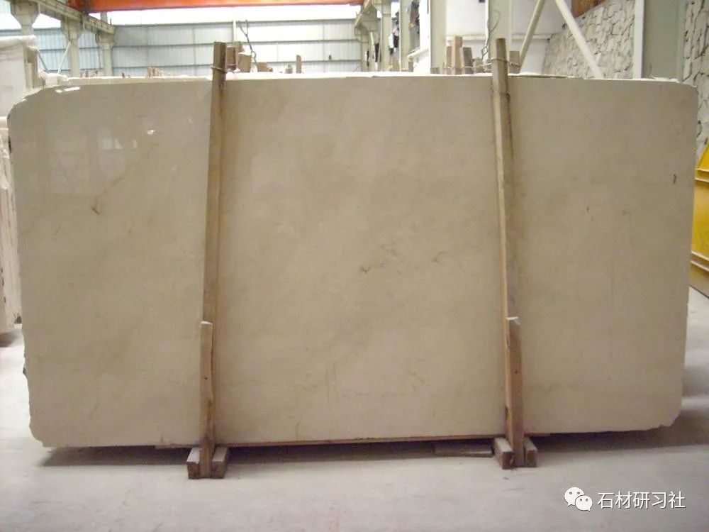 西班牙米黄大理石产于西班牙阿里坎特省皮诺索镇的艾尔考特山。附近地区开采的石材都以同样的名字出售,但是原产地是艾尔考山。西班牙米黄底色米黄色,少量细红线,光度好。种类繁多,西班牙米黄分为四个种类:COTO常规米黄,ZAFRA红米黄,SP闪电米黄,ZIVAS水印米黄.有米粒型,白花型等种类,底色从浅白到深黑都有,均有各种颜色的色线和红线,其中以白底,白纹料最为佳。主要优缺点:1、颜色、花纹差异大 2、白/黄/红/绿斑 3、米牙多 4、黑带、玻璃根、锈线、裂纹 5、粉状风蚀洞 6、阴阳色