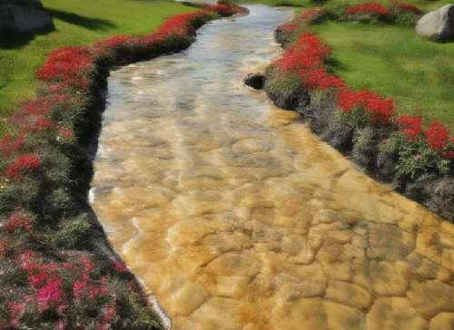 混凝土浇筑完成后,即可进行压花工艺。根据设计图纸和要求,选择合适的压花模具,并根据需求进行布置。然后,将压花模具放置在混凝土表面上,并施加压力,使模具的纹理和图案印在混凝土上。在进行压花过程中,需确保模具的位置准确、压力均匀,以保证路面的整体美观和质量。