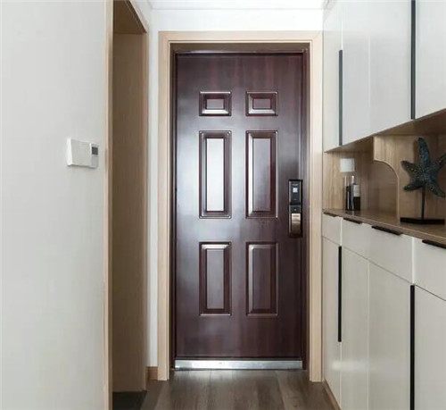2、选购时,还应该注重防盗门的厚度尺寸,一般情况下,防盗门的厚度应该超过九毫米,因为防盗门不仅需要防盗,还需要具有良好的隔音、保温效果,因此防盗门厚度必须保持一定大小,若厚度太薄的话,内部安装材料必然更少,或者是质量更差。