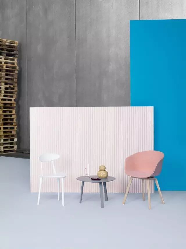 单色系的应用不再显得单调乏味,不同的材质属性也加富有生活的趣味,北欧的家居品牌HAY降低了色彩的饱和度,做出了属于他们自己的风格。