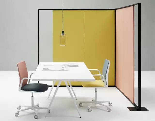 西班牙的设计室Lievore Altherr的屏风设计,简单大方的颜色拼接板高级时尚,板材下方安装推拉设计,可以随时移动。