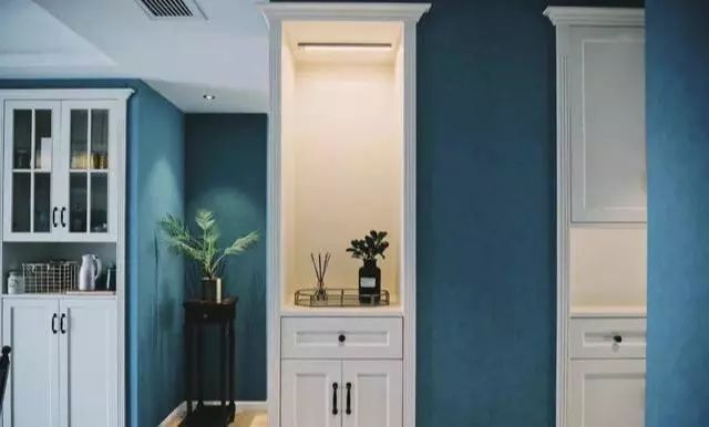 看腻了北欧风、日系木作玄关,这个深邃蓝玄关墙,显得特别复古时尚,喜欢轻奢美式风格的旁友可以pick一下