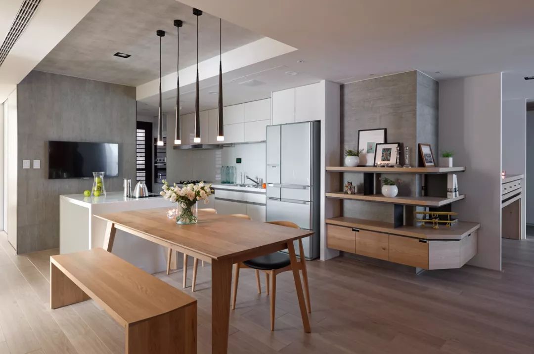 介于生活习惯的差异,日本的烹饪不似我们多油烟、爆炒,因此,日式的风格基本都是以开放式为主特点,对于小户型的房子来说,开放式日式确实是非常合适的选择。因为它将厨房与客厅连接在一起,既减少了厨房的局促感,又增大了客厅的视觉感官长度。