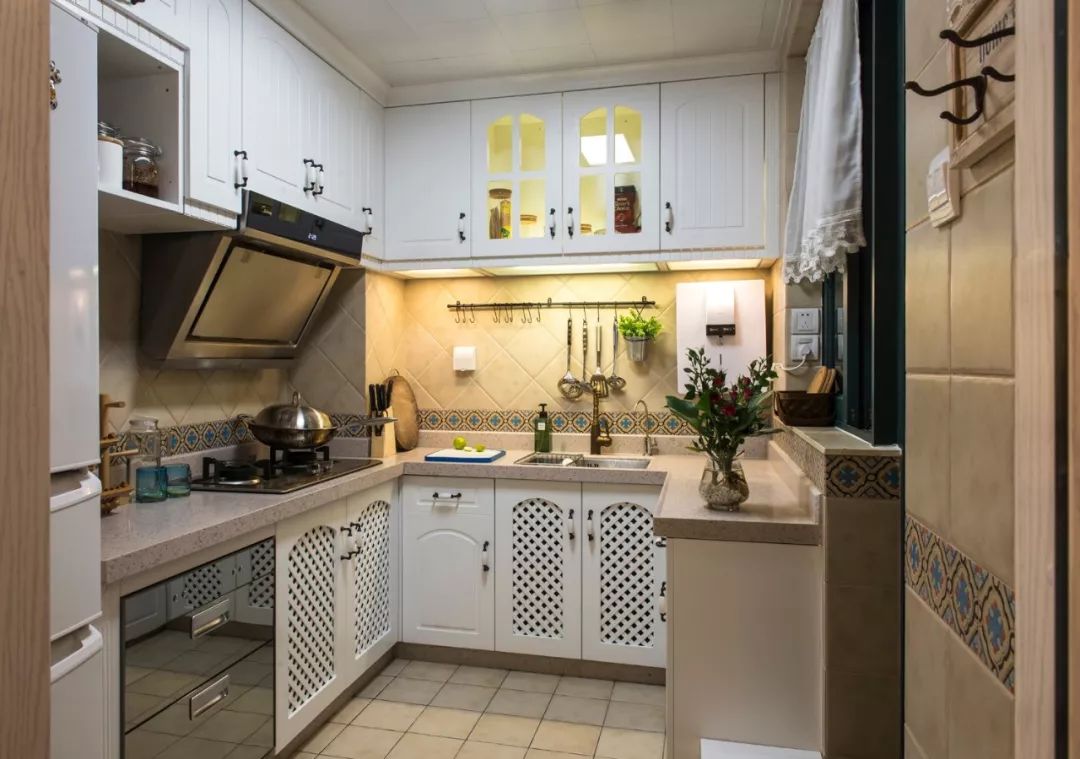 地中海田园的风格的变化,除了橱柜的设计和瓷砖的颜色搭配,还要记得留出摆放绿植的空间,如此才真的将现实与田园自然美好相结合了。