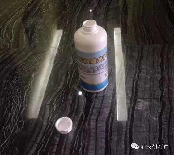 【注】VD石材增光护理剂,是一种有机硅含量达85%以上的特殊防护剂。具有极佳的防护、增光效果。实际上,在我们黑色石材的施工中,这种防护剂已经是必备用品。它用量不多,但在几乎所有黑色石材的研磨抛光中,有着绝佳的效果。