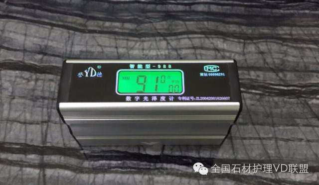 在研磨完成后,采用VD封釉1号、2号以1:1比例混合,用晶面机+百洁垫抛磨至出光即可。
