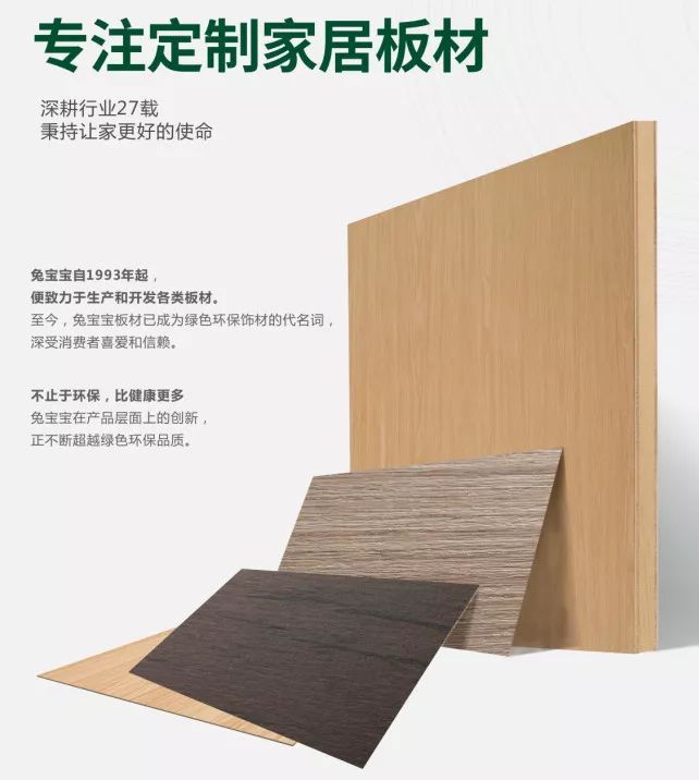 现在全屋定制品牌众多,即使是小作坊,也会对消费者宣称自家产品符合E0级环保标准。而在定制家居行业中作为消费者很难在到货安装前知晓其环保怎么样。不过在众多全屋定制品牌中,说到环保性,兔宝宝绝对有着自信,原因在于,兔宝宝全屋定制所用的材料全部为兔宝宝环保板材,可以从源头上保证其环保性,是富有内涵值得您信赖的定制品牌。