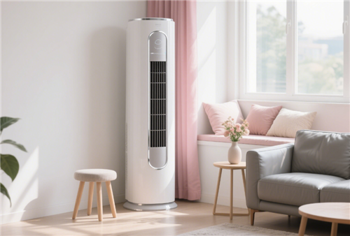 特色:圆润的圆柱造型超省空间,侧面宽度仅 50cm,放在沙发旁不挡过道;运行噪音低至 22dB,晚上开空调也不吵,适合追求安静的家庭;支持上下左右扫风,制冷均匀不直吹。
