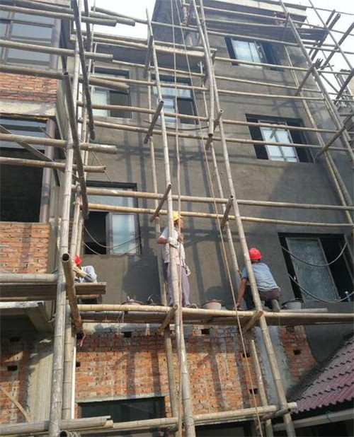 接下来应该在外墙墙面上进行挂网甩毛施工,目的是为了避免外墙墙面出现开裂现象,从而避免为后期的施工带来不必要的影响。挂网的时候一般应该使用钢丝网,网格之间的距离应该保持在10毫米到20毫米之间会更为合适,而直径最好不要超过1.5毫米会更为合适。至于网格在墙面上所搭接的位置一般不应该低于100毫米。