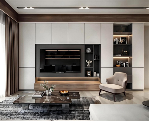 - 通常以低矮的电视柜为主,强调空间的开阔感。推荐高度在40-50厘米。