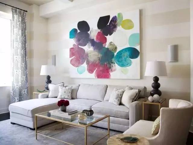在沙发墙上做装饰,不仅可以让客厅显得更加立体和灵动,而且给艺术装饰品提供了很好的展示空间,体现了主人非凡的品味。