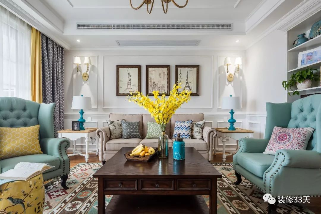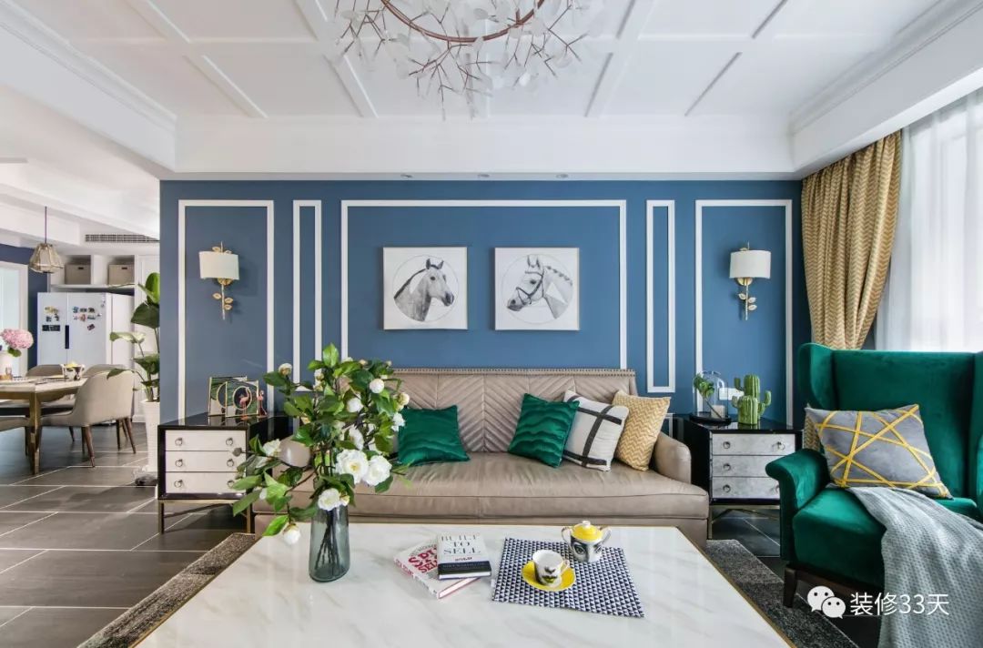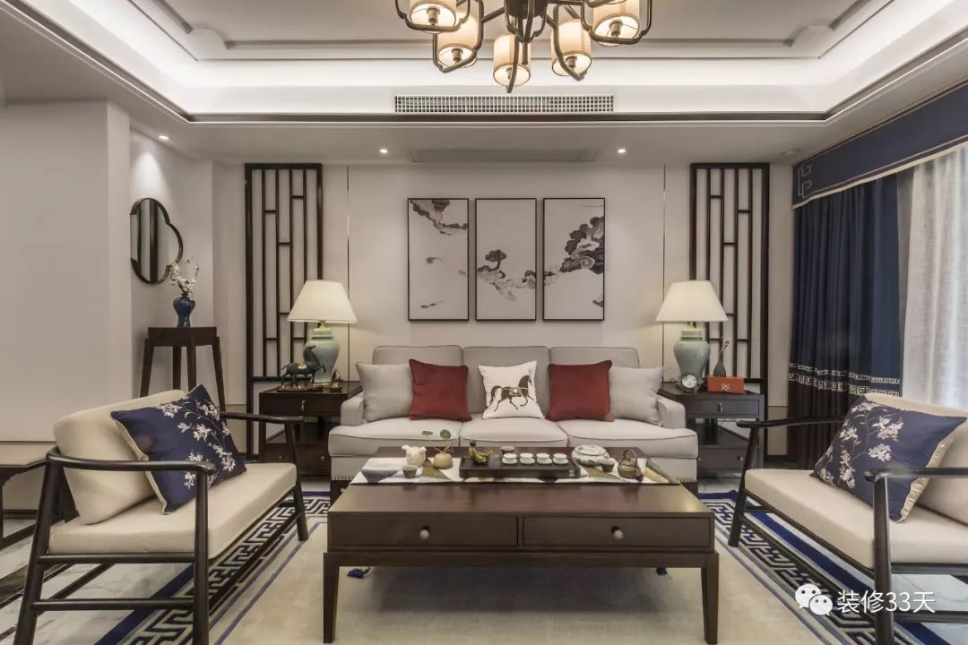 另外,中轴对称也是一种很普遍的装饰手法,多见于中式、美式等风格类型的空间。