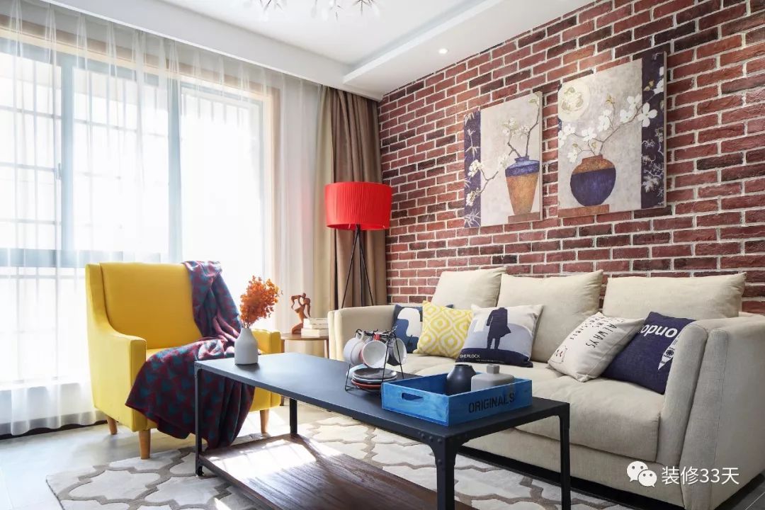 ▲ 文化砖看似粗糙,但通常给人一种复古的韵味,用这种材质来设计沙发背景墙,不仅体现了浓浓的艺术气息,而且看起来非常自然美观。