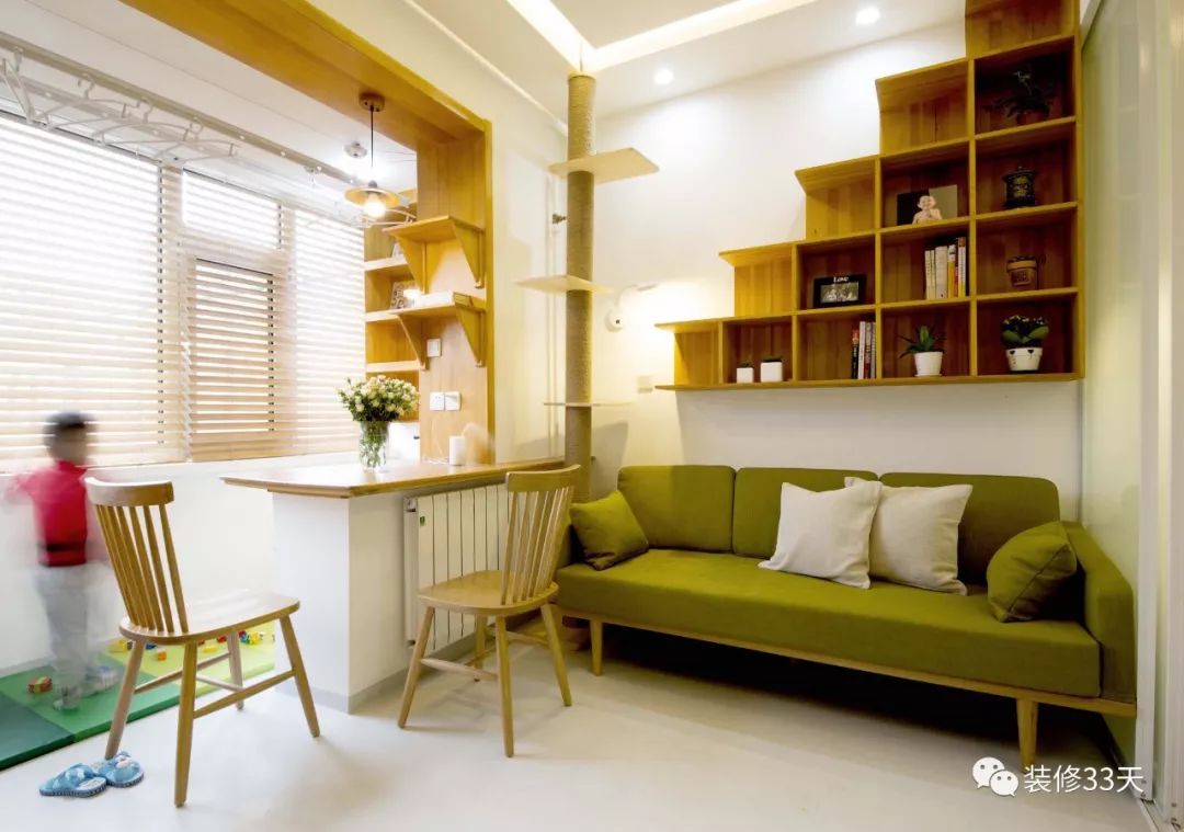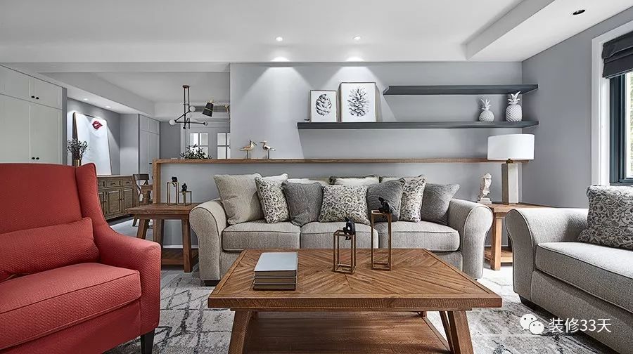 ▲ 在转角位置砌一半堵墙,也可以作为沙发墙使用。
