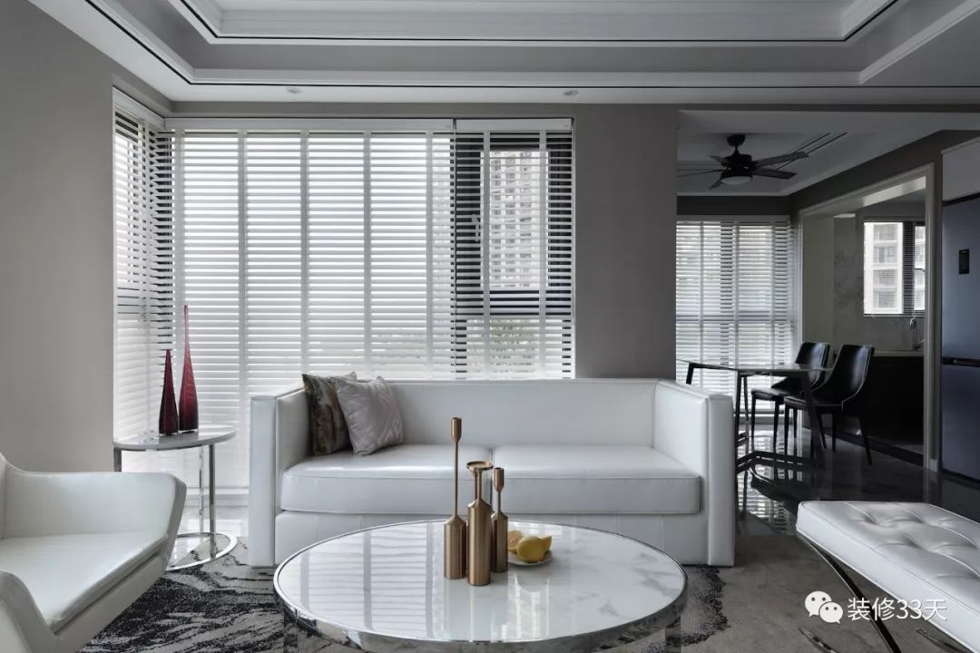 ▲ 沙发紧靠着百叶窗摆放,让人足不出户也能拥有沐浴阳光的感觉,但要考虑反光问题,以免看电视的时候晃眼。