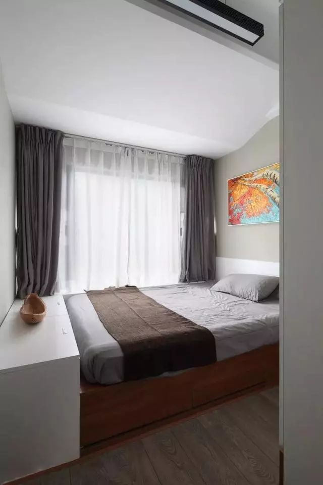 榻榻米下方可以做成巨大的储物空间,小卧室空间也可以利用起来。换季的被子、衣物等,这种一年也拿取几次的东西,可以放在榻榻米下。