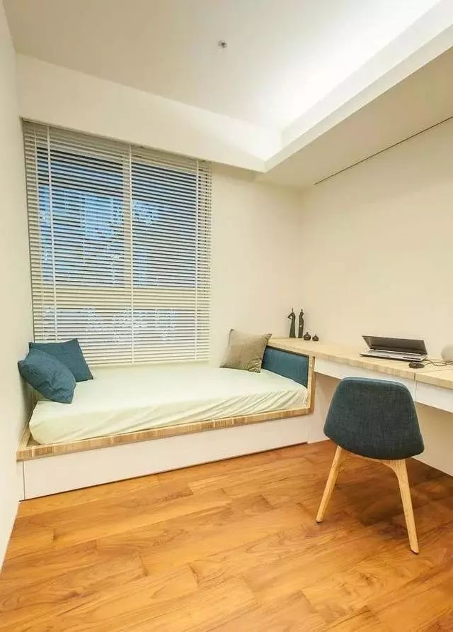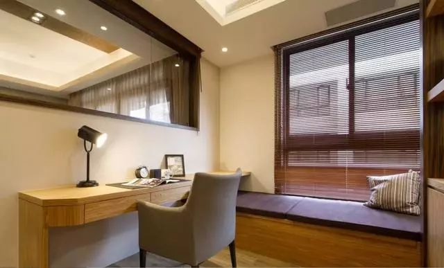 这样不仅可以拥有书房,还可以把这个空间作为休闲或客房用,整个空间的利用率更加好。把书桌跟榻榻米床组合在一起,书桌上方还可以装上书架,整体就显得更加实用大方。