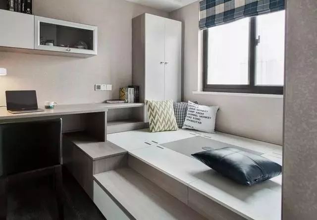 层高够的空间,榻榻米可以做地台,抬高地面,区分出空间,地台下面的空间可以灵活利用,地台上方可以预留出床垫的位置,在很多老房改造中很适用。