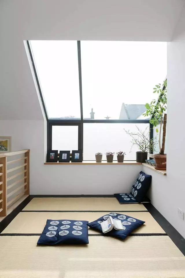家里没有飘窗,可以用榻榻米做一个哦。窗下做一个小型的榻榻米,既可以把这里作为休闲空间,又能储物。