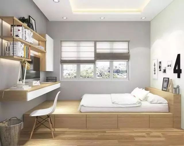 如果楼层偏低又是在潮湿的南方,那么榻榻米也是最为实用的,它还可以免受潮,对水汽起阻挡作用。榻榻米留出的侧面,可做成抽屉,放置一些常用的物品,不但便于平时的收取,又解决了鸡肋屋无法置放柜体的问题。