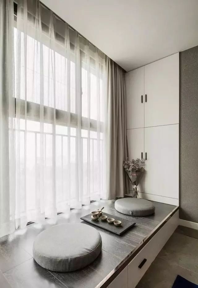 在榻榻米上,平日里可邀上好友,品茶、对弈、聊天,承担着休闲茶室的功能;或是在工作区域感到疲惫,那么移步榻榻米,无论是闭目养神还是品茶,无疑都是缓解压力的方法。