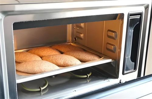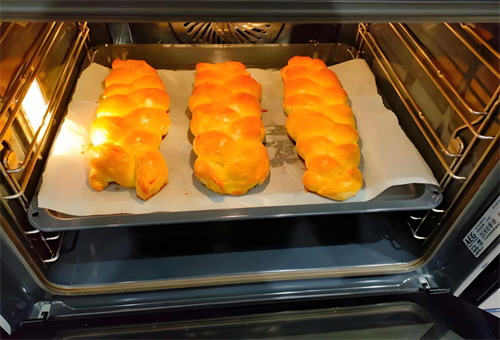 面包的外形和风味也会受电烤箱的类型影响,自然风扇的烤箱会使加热更加均匀,温度和时间上可以略微缩短2至5分钟,而传统的上下火烤箱则可能需要适当延长时间。一直关注面包的外观和气味也很重要,表皮呈金黄色时,说明已经接近完成。