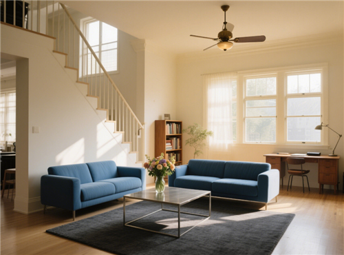 案例一:某别墅挑空客厅层高 6 米、面积 80 平方米,采用全景落地窗和悬挂式楼梯设计,沙发与电视墙距离 3.5 米,搭配 100 英寸激光电视,既保证了观影效果,又凸显了空间层次。