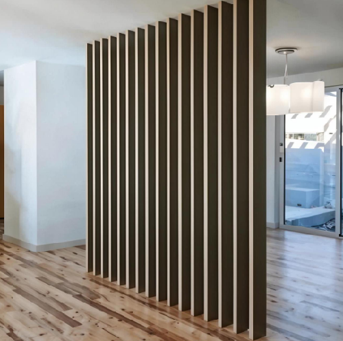 木质隔断墙的优点在于视觉效果良好,且其工艺加工性能强,易于定制和设计。然而,木材对环境较为敏感,容易受到湿气的侵袭,因此在潮湿环境中使用时需谨慎选择材料并做好防潮工作。