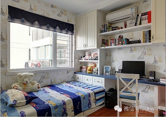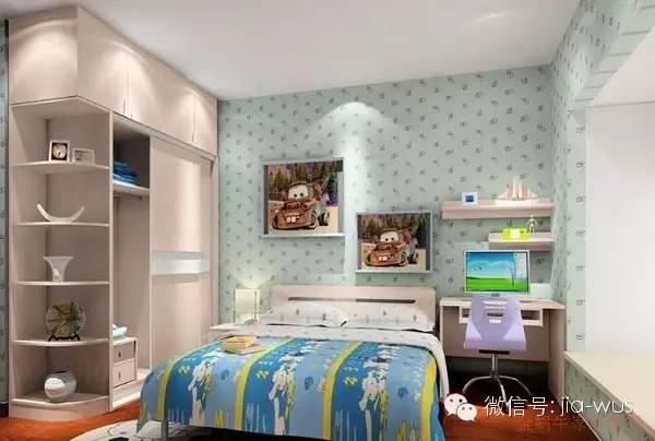 2、墙面颜色:由于10平米小卧室的采光比较有限,在墙面的颜色上要选择比较明亮的颜色。冷色调就是不错的选择,冷色调可以扩大视觉上的空间面积。