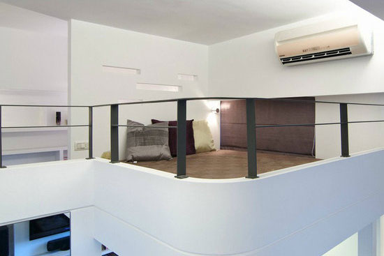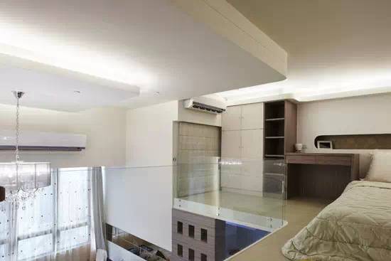 客厅灯光光源辅助上层空间的照明,不仅减轻了睡眠由于空间小带来的压迫感。同时还节约了楼高。