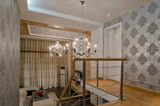 简约奢华的吊灯配合上整个空间的奢华感浓浓的壁纸,使得整个空间呈现出一种现代低调的奢华感。这样的一种简约设计相信你肯定会喜欢的。