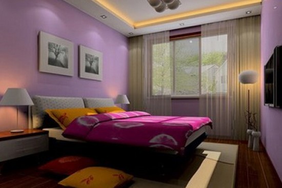 柔和的紫色墙面,白色的卧室窗帘,深紫色的被子,都体现出了这个房间的主人喜欢紫色调。搭配上一款低调小神秘的卧室吊顶,都让整个房间看起来优雅高贵。