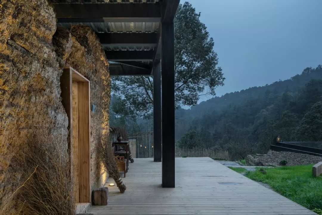 “残墙倚古寺,曲径通幽谷。柴门闻犬吠,琴棋奏和声。开门见山月,心隐淀归尘。辞岁新万物,常聚善缘人。”这是当今时代的快节奏的城市生活与工作模式下人们所向往的乌托邦。在这样的背景下,寺下山隐的思考与创作是可以算作一个较为成功的尝试。但这不仅仅是为满足人们逃避现世而创造的伊甸园,设计师以谦逊的姿态面对场地与自然,立足于建筑的开放性与公益性,将山居中的隐逸与野性发挥淋漓,亦不乏温度与灵魂兼并的人文关怀,在近年来掀起的民宿文化热潮中,为其增加了别样的态度和可持续的生命力。
