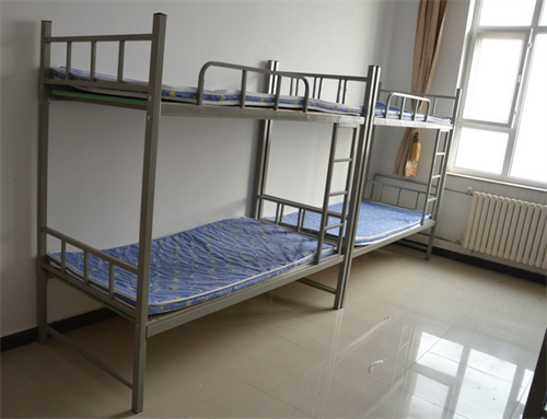 为了满足有兄弟姐妹同住的学生需求,一些宿舍设计了双层上下铺铁床。这种铁床的尺寸标准一般为长190厘米、宽90厘米、高度180厘米。双层上下铺铁床结构紧凑,占用空间小,节省了宿舍空间。同时,不同层的铁床与地面之间的高度设计合理,保证了上下铺之间的空间和舒适度。