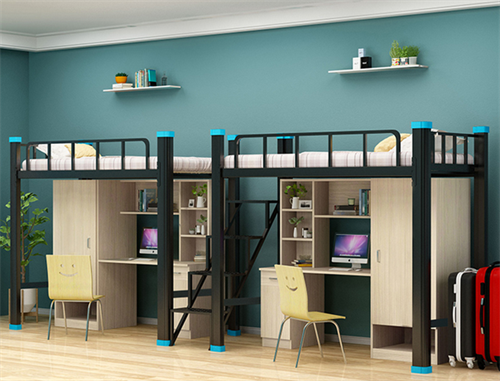 为了进一步提高宿舍的利用率,一些铁床还设计了带书桌的上下铺结构,以满足学生在床上学习的需求。这种铁床的尺寸标准一般为长200厘米、宽90厘米、高度180厘米。床下的书桌设计合理,结构稳定,可以方便地进行学习和写作,使得宿舍空间得到最大化的利用。