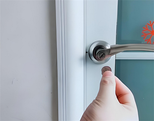 如果浴室门的锁并不是特别安全,你可以尝试使用比较硬的塑料卡片,如信用卡或门禁卡。将卡片插入门缝与门框之间,轻轻上下试动,尝试撬动锁舌。也可以使用硬币代替卡片。