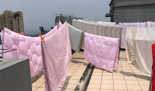 如果因为天气等原因无法在户外晾晒被子,可以在室内进行晾晒,但需适当延长时间。根据空气湿度与室温的不同,室内晒被子一般需要8小时甚至更长。可以利用暖气、风扇等辅助工具加速被褥干燥,但需注意保持空气流通,避免被子受潮或长时间受热导致材质受损。