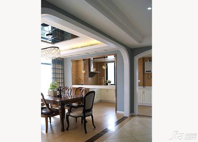 硬朗大气的地中海风格不规则拱门隔开了厨房与餐厅相离不远的距离,坐在餐厅里一边等吃的一边看着某人烹饪的背影,有一股浓浓的幸福满足感。