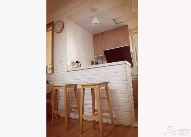 在开放式厨房旁砌了一堵实用的复古小吧台,平时两个人吃吃饭,或是架个ipad看看电影,小日子过得舒服惬意。