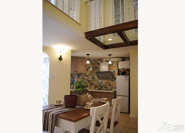 地中海的硬装看起来原本就非常大气,为了避免空洞感,用吧台的横木隔开了餐厅和厨房。